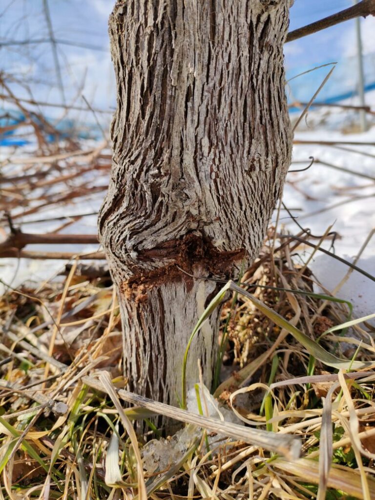 剪定中に見つけた虫跡 圃場の端(周囲)にあるぶどうの樹が虫に食べられました。 薬剤が届きずらく、虫に食べられたり、病気になりやすい場所です。 昨年、梅雨らしい日...
