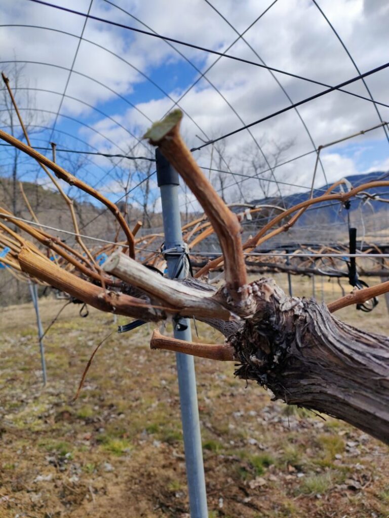 平行整枝の本剪定を始めました。 仮剪定で30cm程度に短くし、本剪定で2芽残して枝を切っていきますが、 今年は3芽剪定にしてみたいと思います。 この枝は、シャイ... -