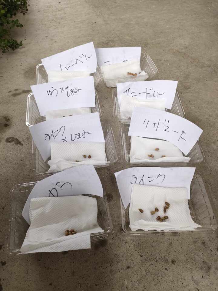 オリジナル品種を育てようと種取りと交配をした種取りをしました。