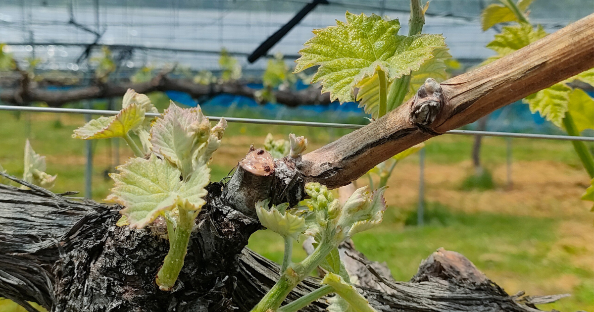 ぶどうの芽が萌芽し、新梢が5・6枚の時までに芽、新梢を取り除く作業です。