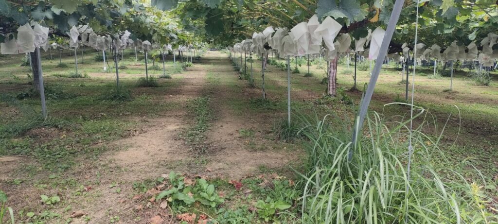 赤系ぶどうは着色しずらく、多くは直射日光を当てると着色が進みます。